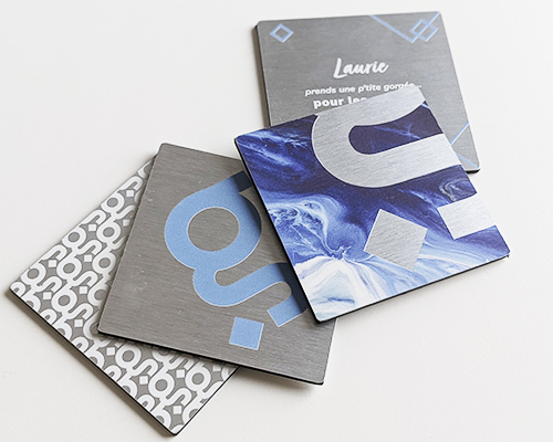 Microbrasseries, restaurants, évènements ou pour offrir en cadeaux, les sous-verres laisseront certainement votre marque bien visible chez vos clients pour vous démarquer de la compétition. Épais ou plutôt minces, découpés selon une forme de votre choix, ils s’adaptent à votre imagination et à vos besoins.